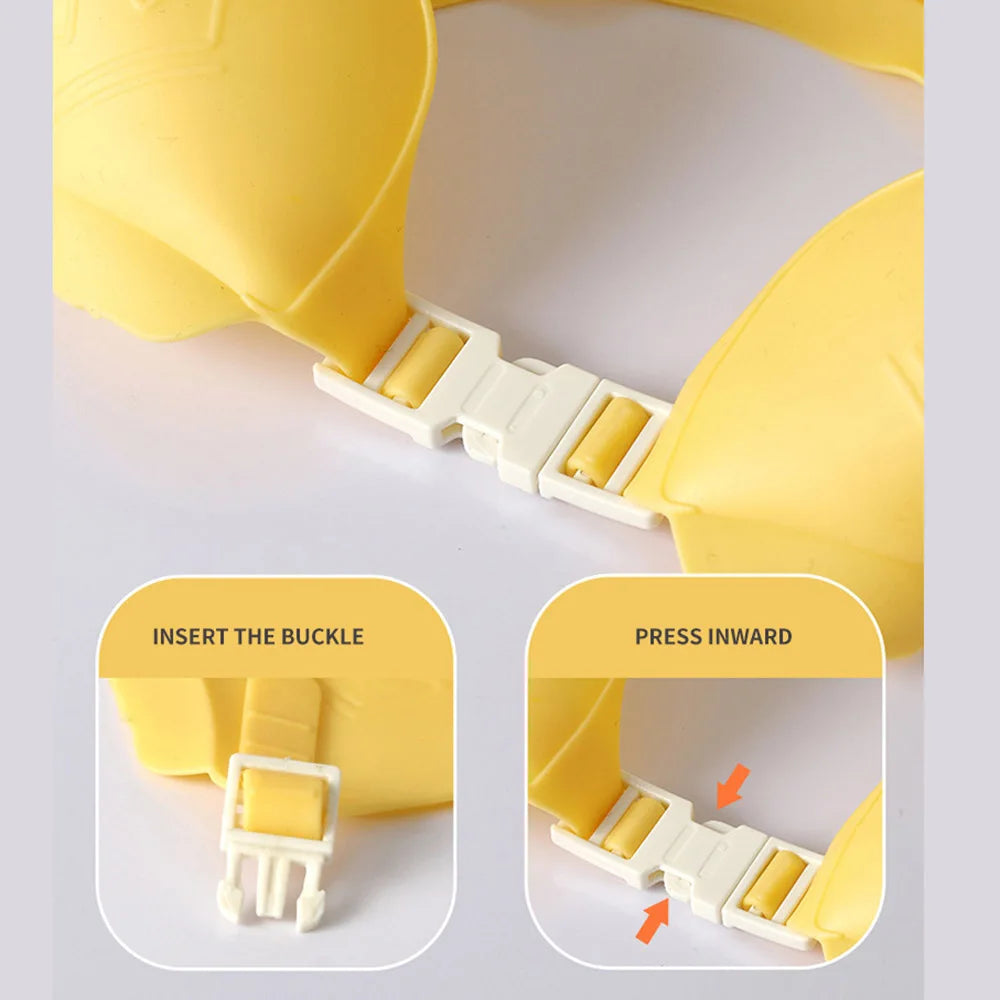 Splash Guard Brim: The brim design diverts water flow backward so water won’t fall directly into the baby’s eyes, ears, or face.