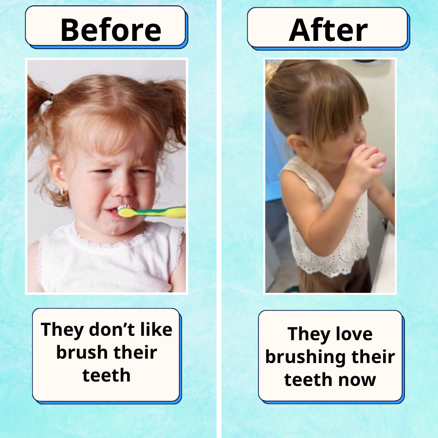 🔵 96% Parents are finding that their children brush their teeth with more pleasure, without arguments or stress.